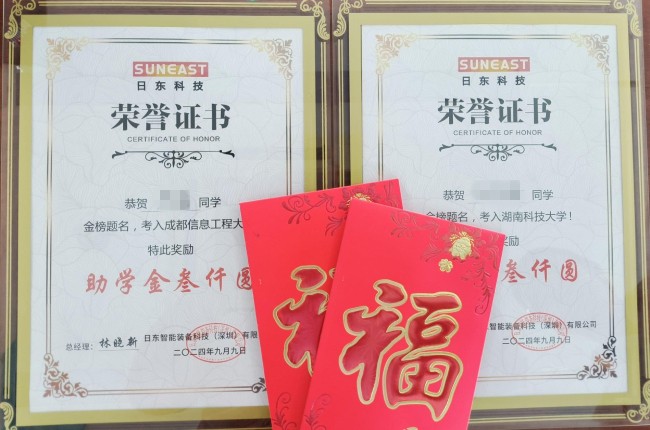 為深入貫徹落實公司“共創(chuàng)、共享、共承、共傳”的價值觀,踐行公司在關(guān)愛員工、促進(jìn)家庭福祉方面的堅定承諾,公司自 2022年起設(shè)立“員工子女助學(xué)金” ,為當(dāng)年度考上一本及以上院校的員工子女進(jìn)行一次性獎勵發(fā)放。 2024年09月09日上午11:00,2024年度員工子女助學(xué)金頒獎在A棟五樓一號會議室召開。
