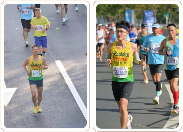 在比賽當天,廣工大的隊員們穿著統(tǒng)一的日東科技定制運動服,在陽光明媚的早晨出發(fā)。他們用腳步丈量城市的每一寸土地,呼吸著清新的空氣,享受運動帶來的快樂!沿途觀眾的熱情加油聲此起彼伏,為選手們注入了源源不斷的動力。最終,廣工大所有隊員都成功完成了全程的比賽,以實際行動詮釋了什么叫堅持到底,其中,黃文龍選手以2:45:53的凈成績跑完全程,在17195名參賽者中獲得了排名101的好成績!