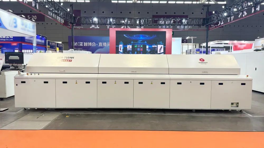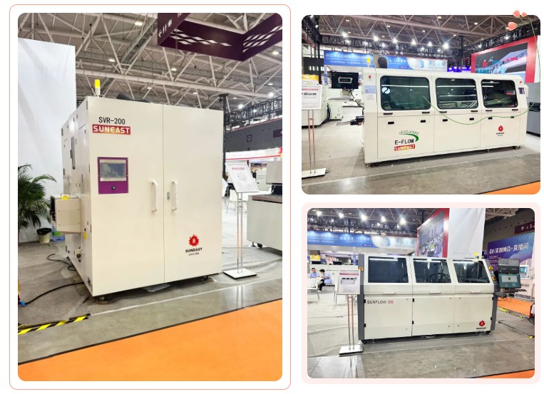 日東科技攜明星產(chǎn)品氮?dú)饣亓骱浮⒉ǚ搴?/span>、雙電磁泵選擇性波峰焊、在線式隧道爐、垂直固化爐集中亮相,全面展示了日東科技核心技術(shù),吸引了大批觀眾來到展臺(tái)參觀了解。