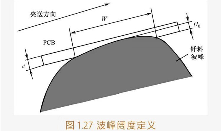 ①定義:當波峰高度處于正常作高度Ho(如7~8mm),PCB(板厚為d)位于其上且壓波峰的深度為2d/3時,沿傳送方向PCB下表面與波峰接蝕的長度稱為波峰的闊度。